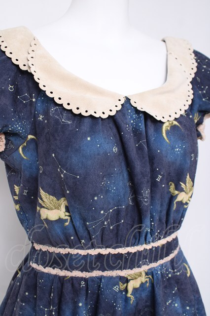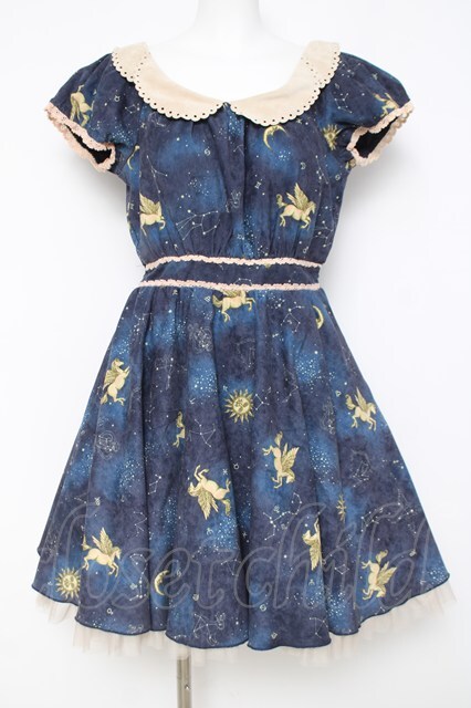 Secret Honey / 星座柄半袖ワンピース 紺 Y-26-04-17-178-CA-OP-SZ-ZY