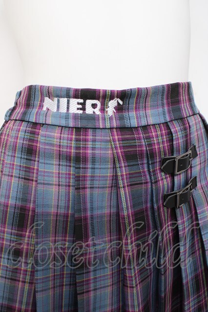 NieR Clothing / ロゴ刺繍チェックスカート F ブルー Y-26-04-17-205-PU-SK-SZ-ZY