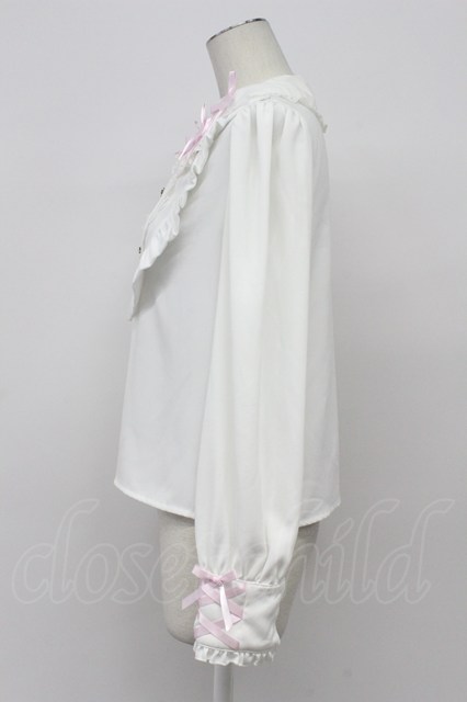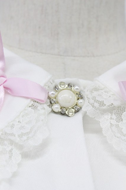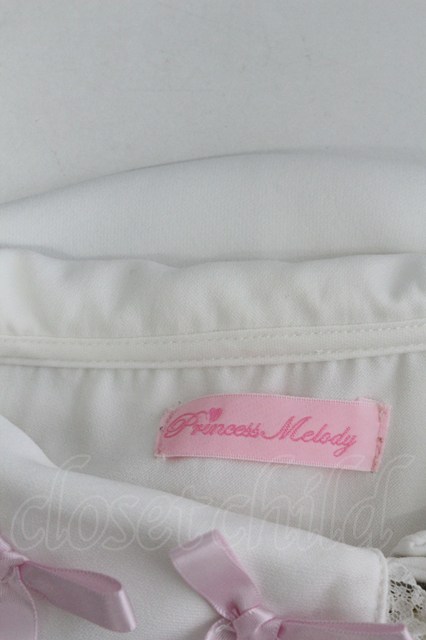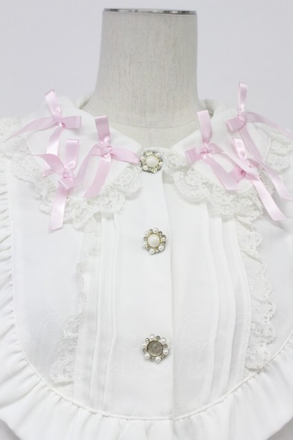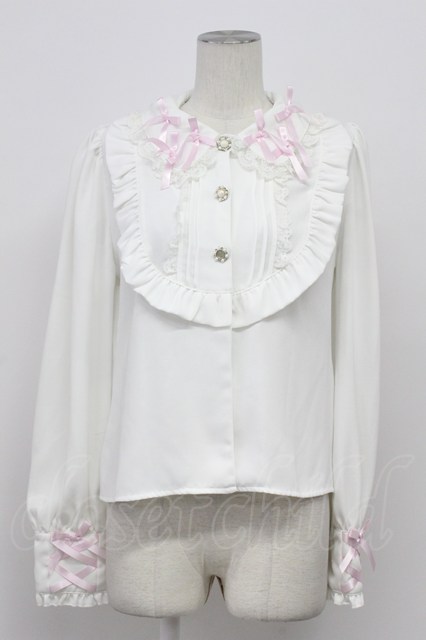 Princess Melody / リボン襟パールボタンブラウス 白XピンクXシルバー T-26-04-20-005-EL-BL-SA-ZT