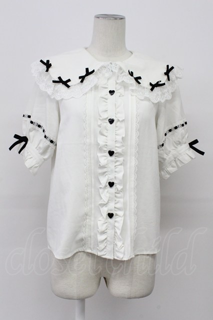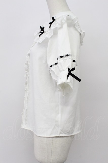 DearMyLove / リボンいっぱいレースロリータブラウス 白X黒 T-26-04-20-010-EL-BL-SA-ZT
