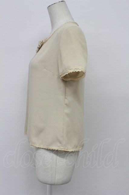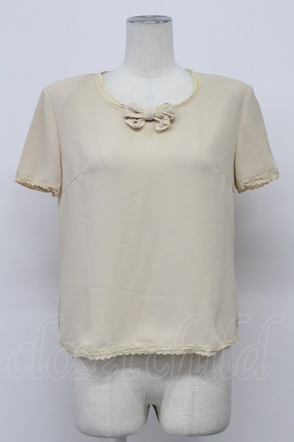 INGEBORG / 胸元リボン後ろボタン半袖ブラウス S ベージュ T-26-04-20-015-LO-BL-SA-ZT
