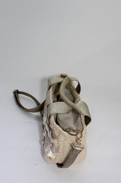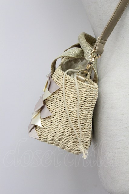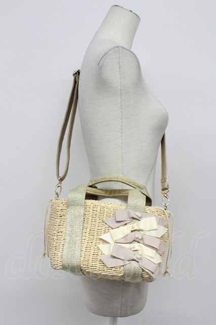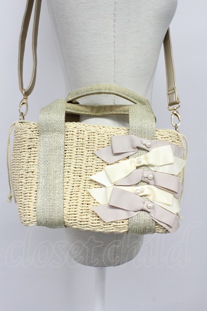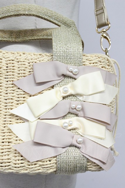 axes femme / 5つリボン麦わらショルダーバッグ アイボリー T-26-04-20-018-AX-BG-SA-ZT