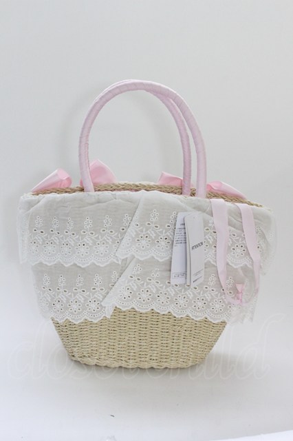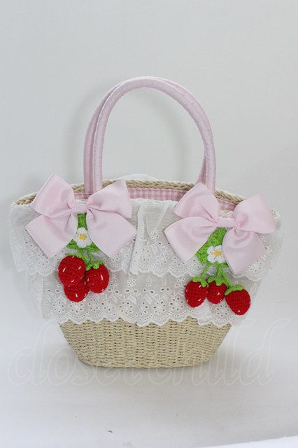 axes femme kawaii / いちごあみぐるみ付カゴバッグ ピンク T-26-04-20-021-AX-BG-SA-ZT