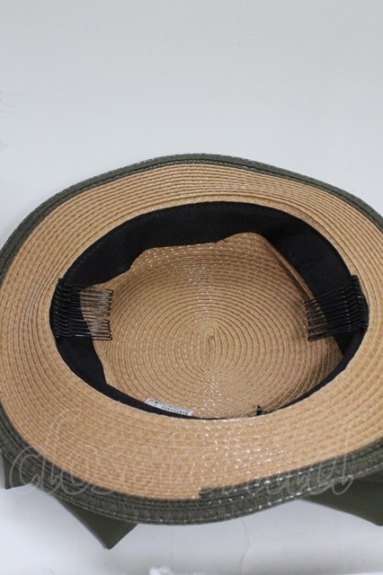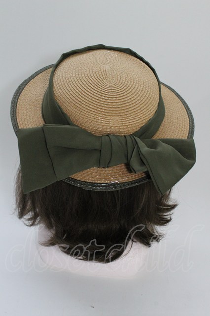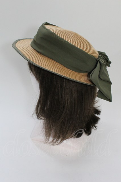 an another angelus / 配色ブリムバックリボンキャノチェ ベージュ×グリーン T-26-04-20-026-CA-AC-SA-ZT [2100060000029816-T-26-04-20-026-CA-AC-SA-ZT]