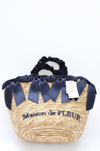 Maison de FLEUR / フリルハンドルリボンかごバッグ ベージュXネイビー T-26-04-20-031-LO-BG-SA-ZT