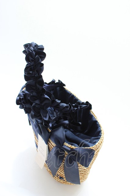 Maison de FLEUR / フリルハンドルリボンかごバッグ ベージュXネイビー T-26-04-20-031-LO-BG-SA-ZT [2100060000042526-T-26-04-20-031-LO-BG-SA-ZT]