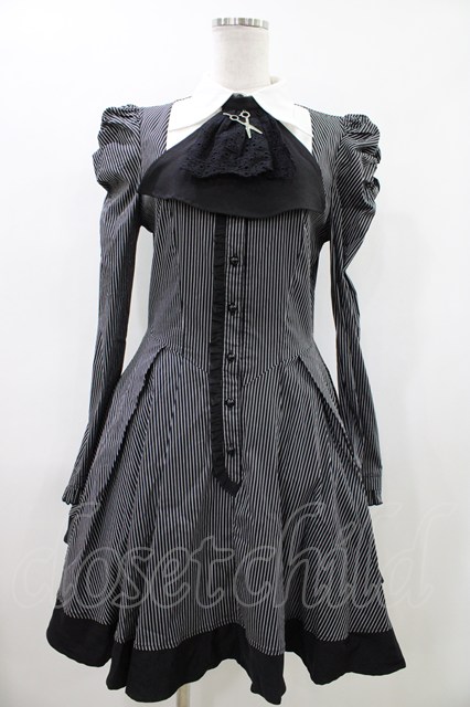 DARK IN LOVE / Black white strip preppy style dress M 黒 H-26-04-19-2011-PU-OP-AK-ZH [2100030000092324-H-26-04-19-2011-PU-OP-AK-ZH]