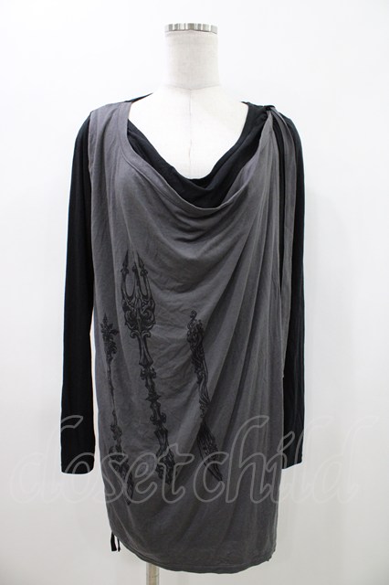 BPN / ドレープレイヤードカットソー M 黒×グレー H-26-04-19-2025-GO-TO-AK-ZH