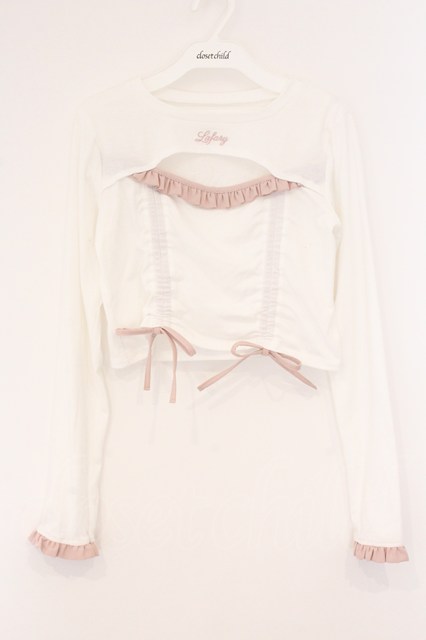 LAFARY / ドロストリボントップス F シロ×ピンク O-26-04-14-020-LO-TO-OW-OS