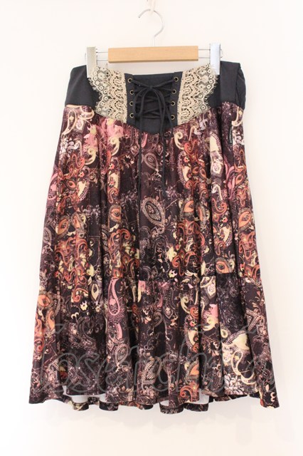 Ozz oneste / オリエンタル柄レースアップスカート ブラウン系 O-26-04-14-030-OO-SK-OW-OS
