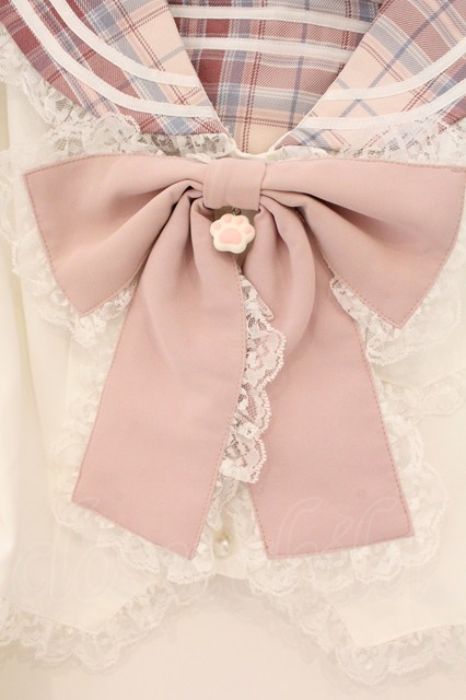 Ank Rouge / ネコのJK制服 ブラウス M シロ×ピンク O-26-04-14-016-CA-BL-OW-OS