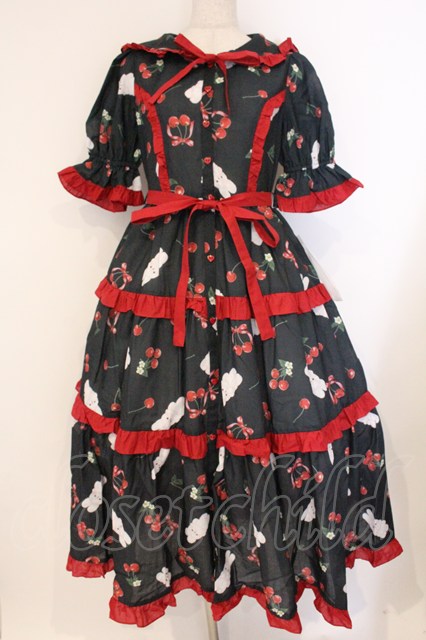 Chalmiere / チェリーバニー柄ワンピース M クロ O-26-04-14-042-0-OP-OW-OS [2100080000080076-O-26-04-14-042-0-OP-OW-OS]