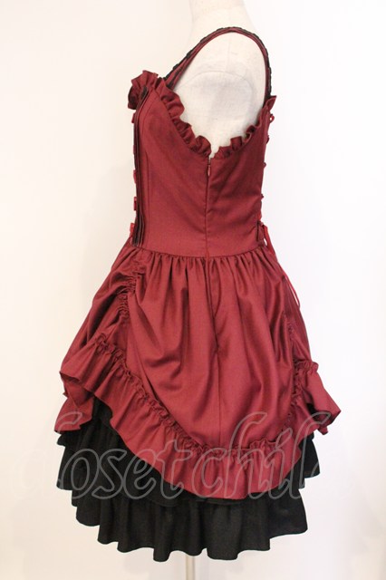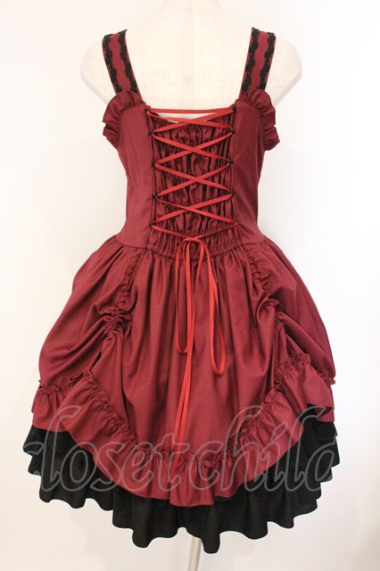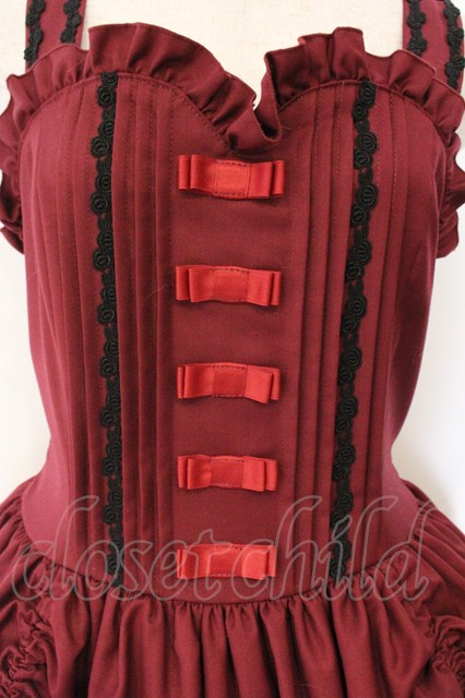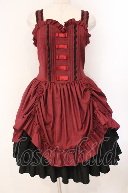ATELIER PIERROT / フロントリボンバッスルジャンパースカート ワイン×ブラック O-26-04-14-035-EL-OP-OW-OS