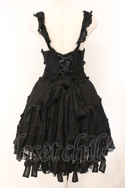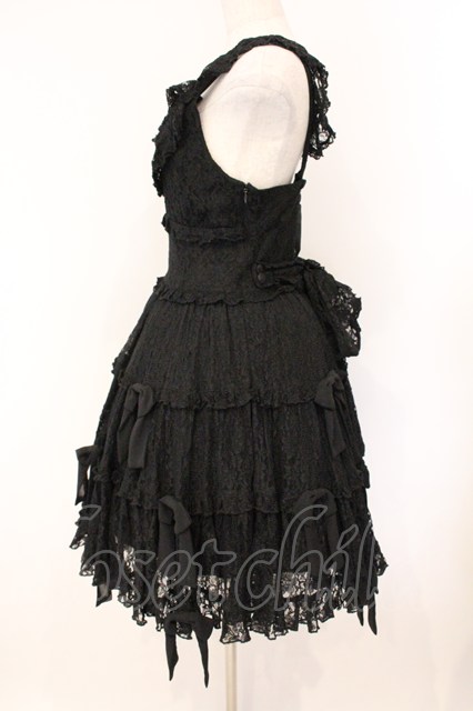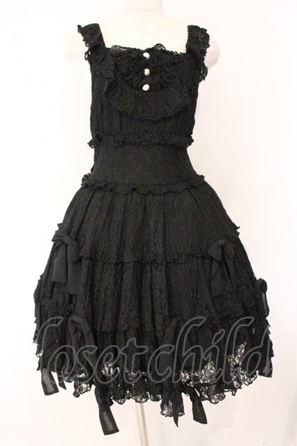 metamorphose / シフォンリボン総レースティアードジャンパースカート クロ O-26-04-14-033-ME-OP-OW-OS