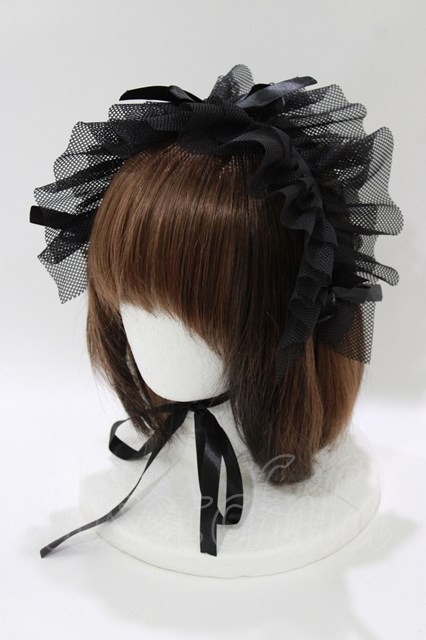 MARBLE / リボンフリルヘッドドレス 黒ネット×サテンリボン H-26-04-20-077-GO-AC-KB-ZH [2100030000092137-H-26-04-20-077-GO-AC-KB-ZH]