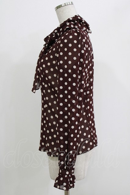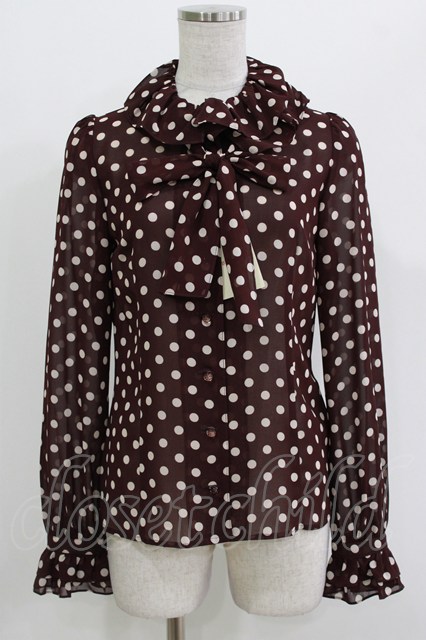 Emily Temple cute / ジョーゼットドットフリルカラーブラウス ワイン H-26-04-20-057-ET-BL-KB-ZH [2100030000064045-H-26-04-20-057-ET-BL-KB-ZH]
