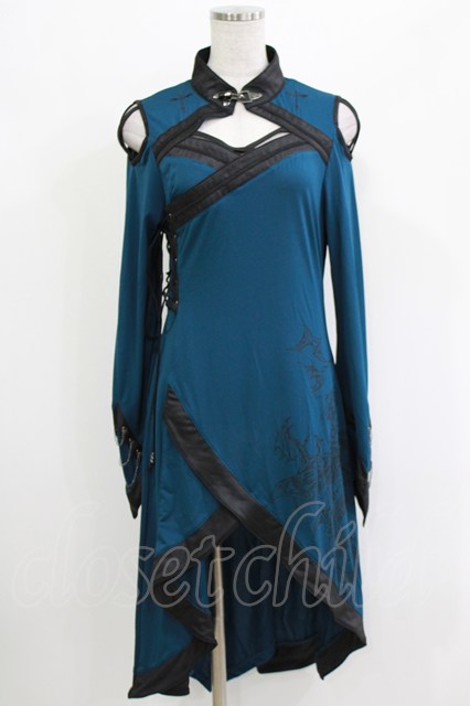 Ozz Croce / クロス刺繍アシメワンピース ターコイズ H-26-04-20-050-OO-OP-AK-ZH [2100030000092132-H-26-04-20-050-OO-OP-AK-ZH]