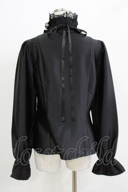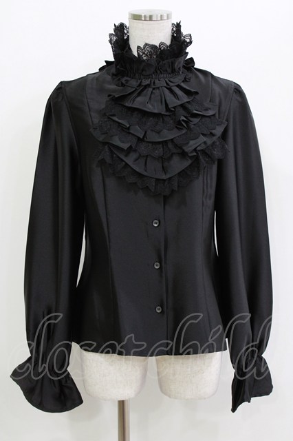 Moi-meme-Moitie / 薔薇レースストライプジャボ付きブラウス ブラック H-26-04-20-055-MO-BL-KB-ZH [2100030000092158-H-26-04-20-055-MO-BL-KB-ZH]