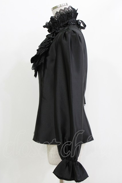 Moi-meme-Moitie / 薔薇レースストライプジャボ付きブラウス ブラック H-26-04-20-055-MO-BL-KB-ZH