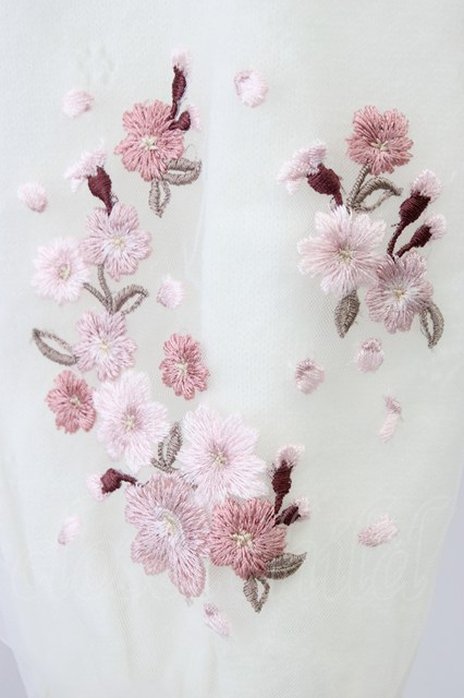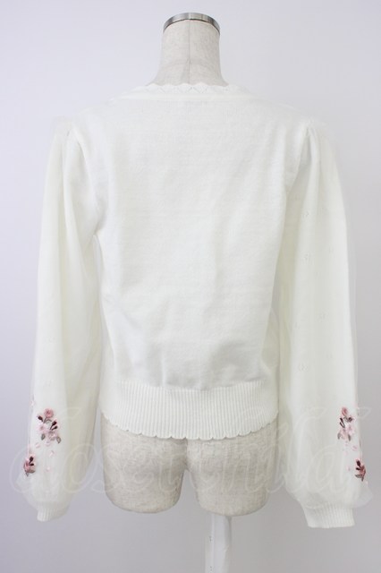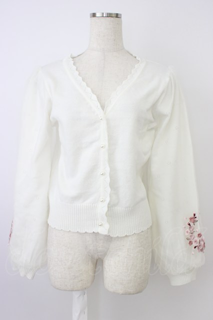 axes femme / サクラ刺繍チュール袖カーディガン 白 T-26-04-15-001-AX-TO-SA-ZT