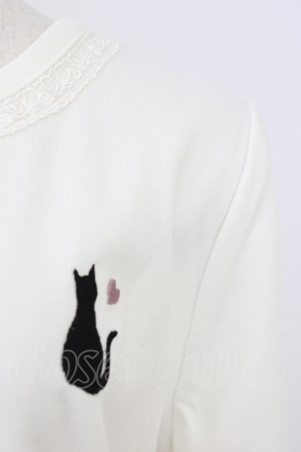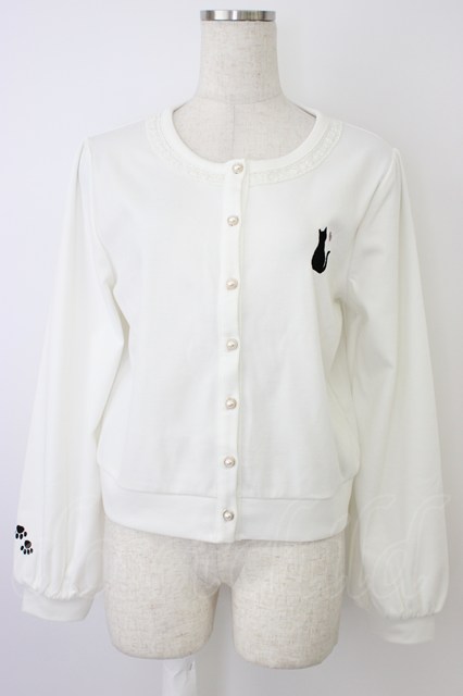 axes femme / 袖口×胸元ネコ刺繍カットカーディガン 白 T-26-04-15-002-AX-TO-SA-ZT
