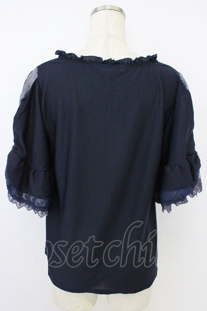 axes femme / 袖レース切替トップス ネイビー T-26-04-15-010-AX-TO-SA-ZT