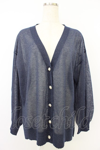 axes femme / UVカットシアーニットカーディガン ネイビーラメ T-26-04-15-011-AX-TO-SA-ZT