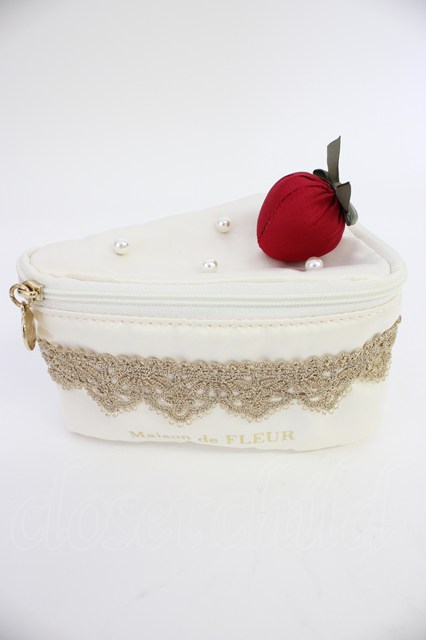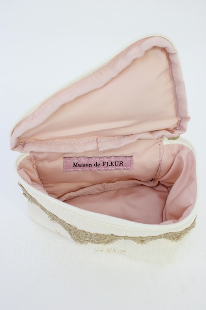 Maison de FLEUR / ショートケーキポーチ 白XゴールドX赤 T-26-04-15-040-LO-ZA-SA-ZT [2100060000052690-T-26-04-15-040-LO-ZA-SA-ZT]