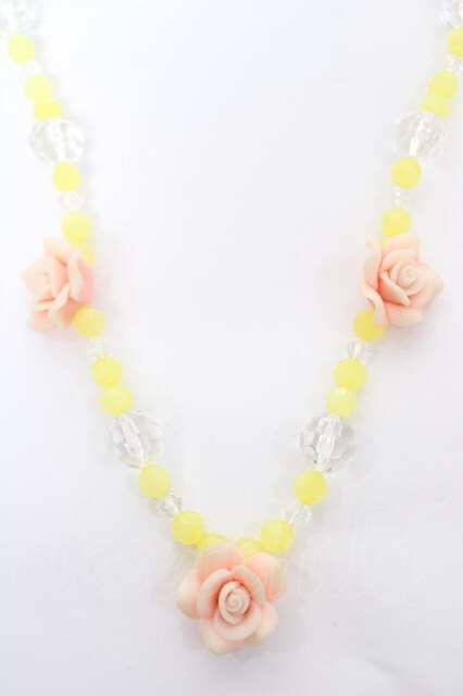 Emily Temple cute / ローズビーズネックレス イエロー×クリア Y-26-04-19-062-ET-AC-SZ-ZY