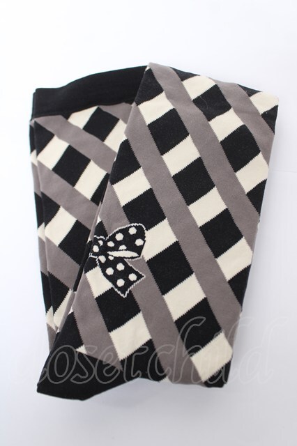 Emily Temple cute / 水玉リボン&チェック柄ソックス 黒 Y-26-04-19-091-ET-ZA-SZ-ZY