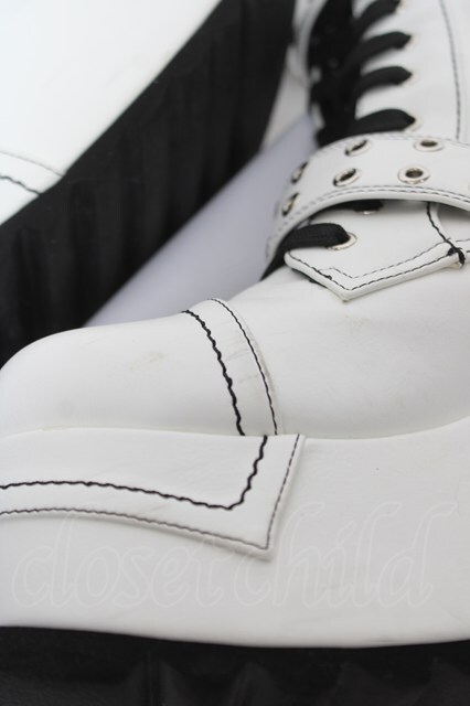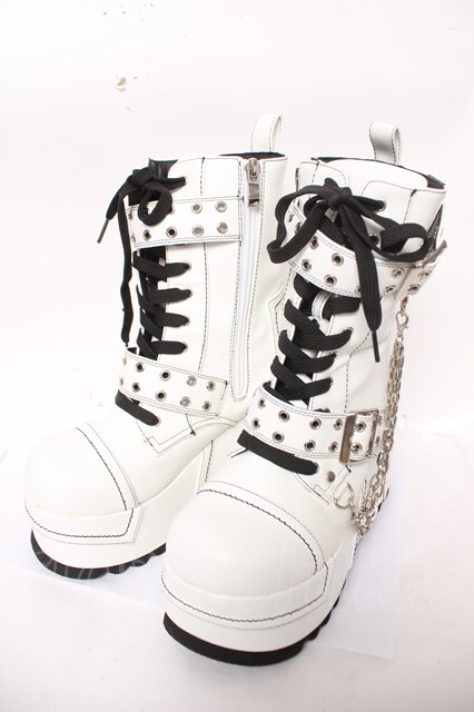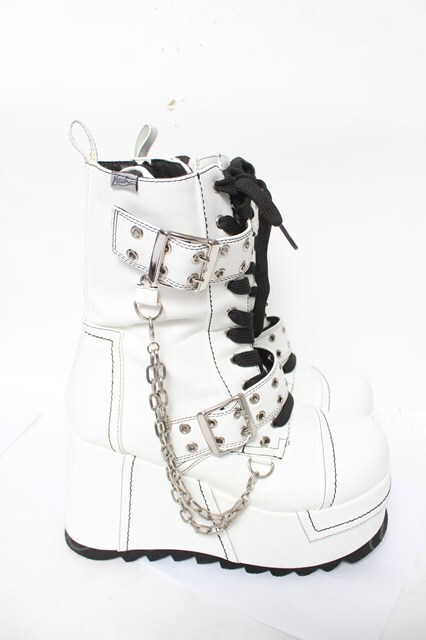 YOSUKE / 厚底ベルト付きレースアップブーツ L 白 Y-26-04-19-121-PU-SH-SZ-ZY