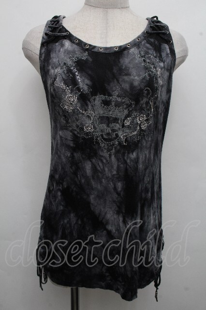 Ozz Croce / バラ刺繍タイダイタンクトップ グレー S-26-04-15-019-OO-TO-HR-ZS