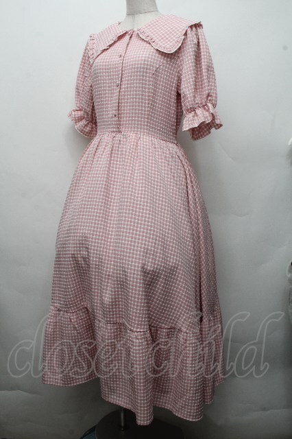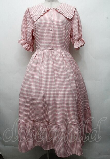 m petit by misako / ギンガムチェックワンピース L ピンクx白 S-26-04-15-039-LO-OP-HR-ZS
