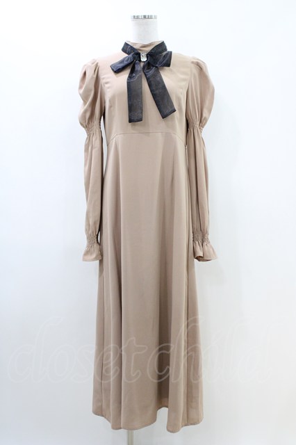 EATME / ボウタイマキシワンピース M ベージュ H-26-04-19-1029-LO-OP-NS-ZH [2100030000092254-H-26-04-19-1029-LO-OP-NS-ZH]