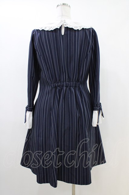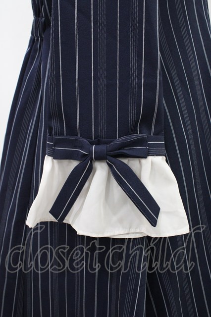 axes femme POETIQUE / 袖リボンフリルストライプワンピース M ネイビー H-26-04-19-1038-AX-OP-NS-ZH