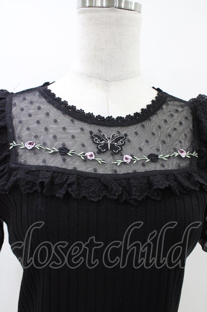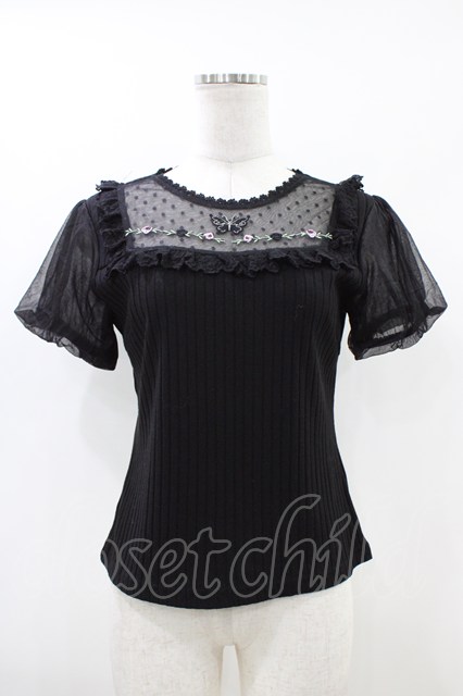axes femme POETIQUE / 蝶ステッチ切替トップス M ブラック H-26-04-19-1045-AX-TO-NS-ZH [2100030000092241-H-26-04-19-1045-AX-TO-NS-ZH]