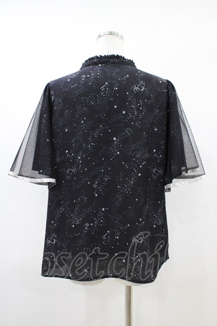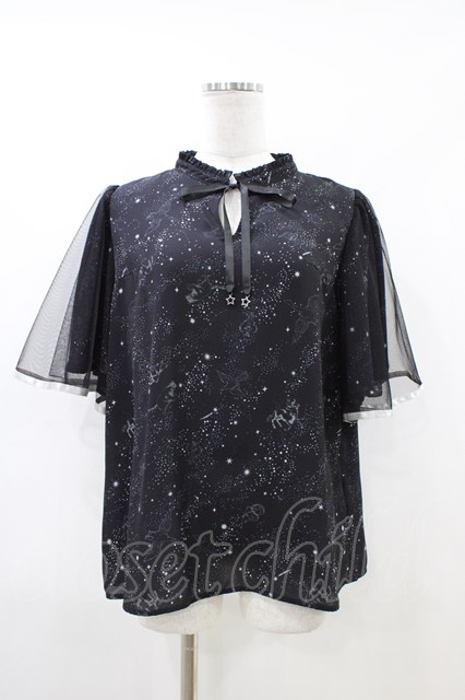 axes femme / 星座柄チュール重ね袖ブラウス M ブラック H-26-04-19-1049-AX-BL-NS-ZH [2100030000092285-H-26-04-19-1049-AX-BL-NS-ZH]