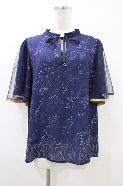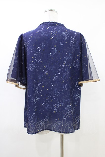 axes femme / 星座柄チュール重ね袖ブラウス M ネイビー H-26-04-19-1050-AX-BL-NS-ZH