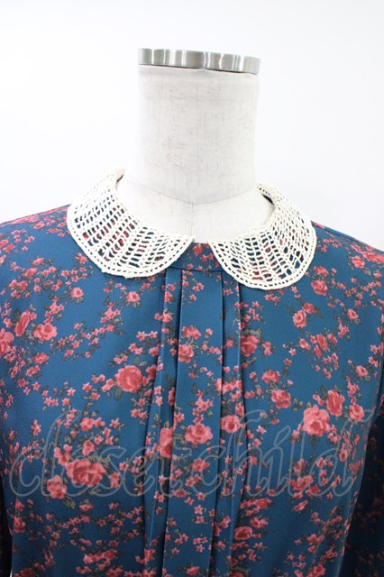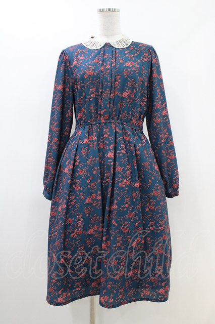 an another angelus / カメオブローチ付き壁紙花柄ワンピース Free GREEN H-26-04-19-1035-CA-OP-NS-ZH