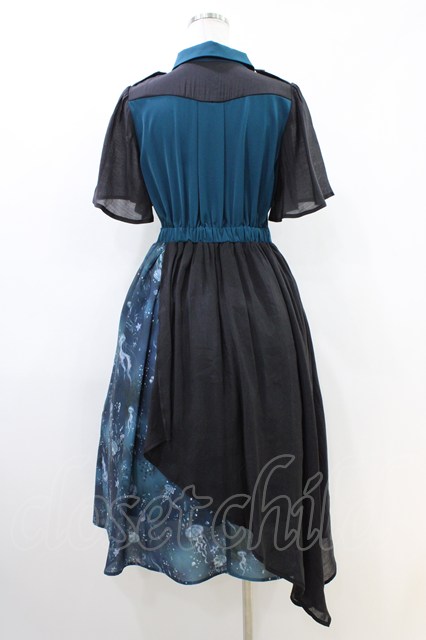 axes femme POETIQUE / ダークマリンバイカラーワンピース M ブルーグリーン H-26-04-19-1037-AX-OP-NS-ZH [2100030000092283-H-26-04-19-1037-AX-OP-NS-ZH]