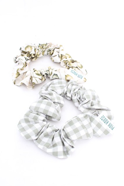 PINK HOUSE / White Clover柄&ギンガムチェックシュシュ アイボリー×グリーン O-26-04-15-006-LO-AC-OW-OS [2100080000078649-O-26-04-15-006-LO-AC-OW-OS]