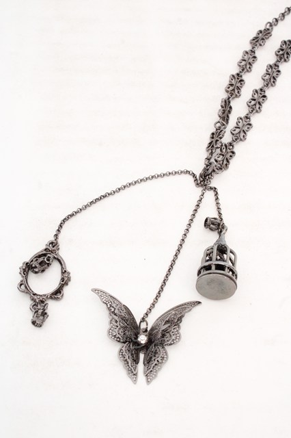BPN / 鳥籠&バタフライモチーフネックレス ガンメタ O-26-04-15-047-GO-AC-OW-OS