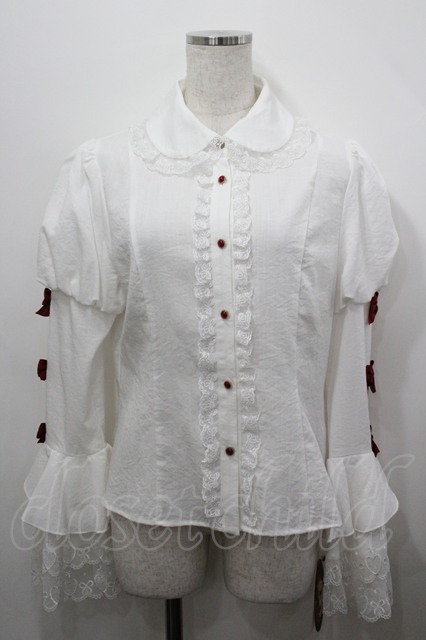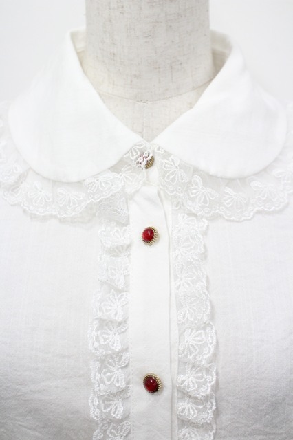 To Alice / ヴィンテージドールブラウス 白X赤 I-26-04-14-004-LO-BL-SA-ZI [2100060000054701-I-26-04-14-004-LO-BL-SA-ZI]