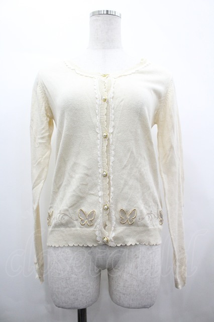 axes femme / 蝶刺繍カーディガン M 生成り I-26-04-14-012-AX-TO-TE-ZI