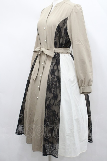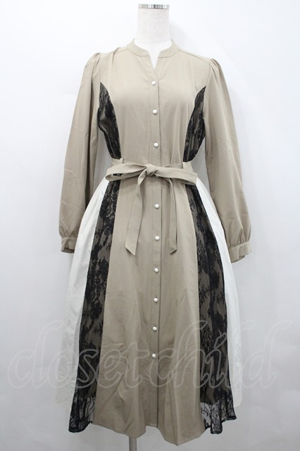 axes femme / レース切替配色シャツワンピ M ベージュ I-26-04-14-055-AX-OP-TE-ZI [2100060000054165-I-26-04-14-055-AX-OP-TE-ZI]