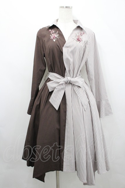 axes femme / 薔薇刺繍バイカラーワンピース M ブラウン I-26-04-14-056-AX-OP-TE-ZI [2100060000054620-I-26-04-14-056-AX-OP-TE-ZI]