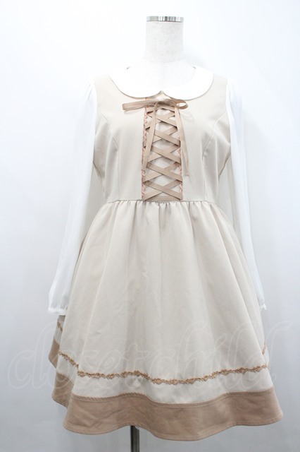 Ank Rouge / レースアップ丸襟ワンピース M ベージュ I-26-04-14-063-CA-OP-TE-ZI
