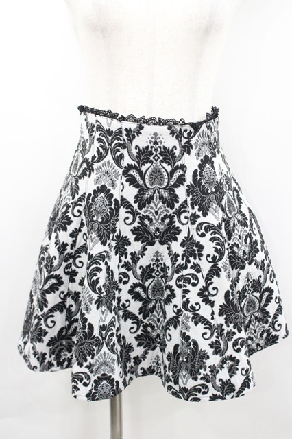 Ank Rouge / ゴブラン総柄スカート 白X黒 I-26-04-14-094-CA-SK-SA-ZI