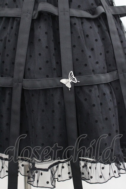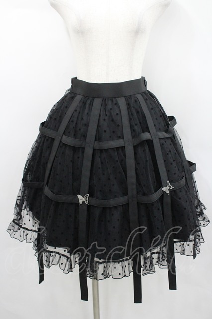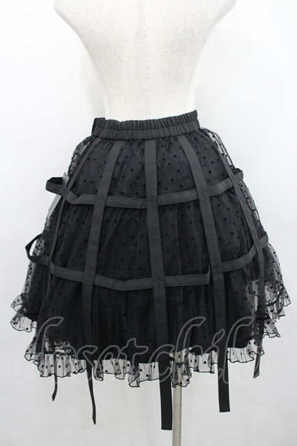 Moi-meme-Moitie / ドットフロッキー鳥籠スカート 黒 I-26-04-14-102-MO-SK-SA-ZI