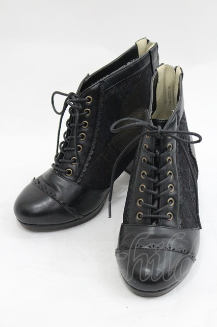 axes femme / チュールレースアップブーツ M 黒 I-26-04-14-125-AX-SH-TE-ZI [2100060000054613-I-26-04-14-125-AX-SH-TE-ZI]